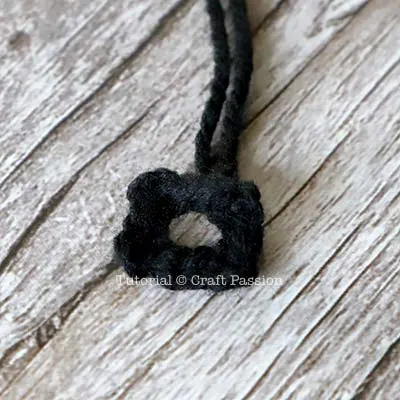 ch 80 or until it measures 14", fasten and trim the end near to the knot. Apply some all-purpose adhesive to secure it.