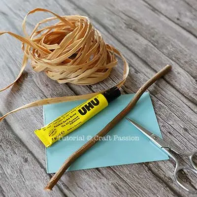 - Place the twig on the yarn, apply some all-purpose adhesive at the twig where the area is in contact with the yarn.