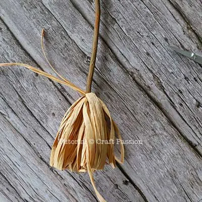 - With a new strand of raffia yarn, strap the wound yarn and carefully remove the loops from the cardboard.