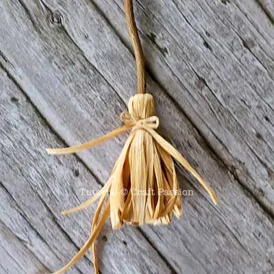 This broom is a quick and easy Halloween craft to make and it doesn’t require any crochet skill. It is so easy that kids can make it. What you need are an 8″ long ¼” twig, raffia yarn in kraft color, and some simple tools that you can find in your craft drawer. You may replace the raffia yarn with another type of yarn; just ensure it has stiff fiber like twine, linen yarn, starched yarn, or paper yarn.