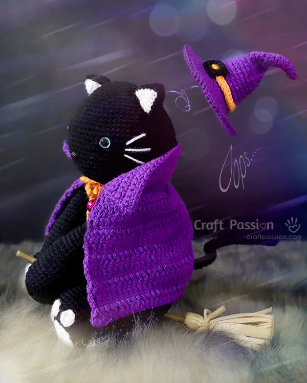 For the full article, visit: https://www.craftpassion.com/halloween-witch-costume-for-amigurumi/
