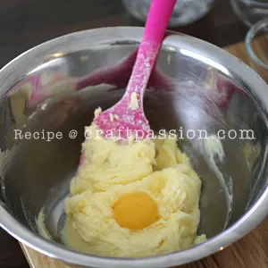 - Combine butter, icing sugar and egg yolk in a large bowl. Mix well.