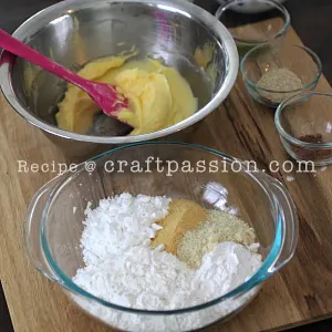 - In another medium mixing bowl, sieve together flour, potato starch, and custard powder. Add in the ground almond and milled cornflakes. Mix well.