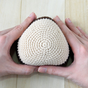 - While you fill the body with stuffing, start shaping the doll as you would a triangle onigiri (rice ball).