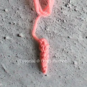 ch, sc 4 into the ring. sc around until the tail is 1″ long.