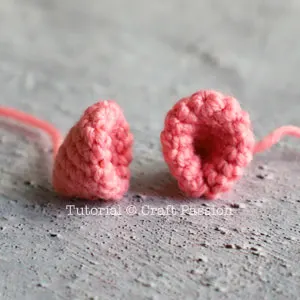 Round 1: ch10, Inc in 2nd ch from hook, sc 7, 5sc in the last ch. Continue on the other side of the chain base, sc 7, 3sc in the last ch. {24}