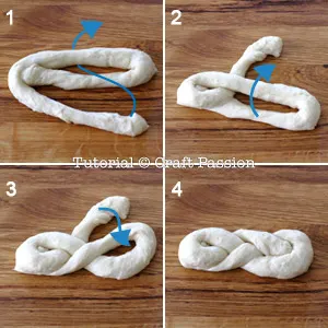 Rollback into a cylinder. Roll and stretch the dough into a rope with both hands.