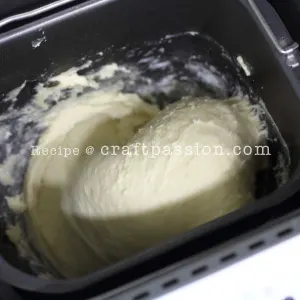 Set the bread maker machine to dough function to start the kneading process. When the ingredients are about to combine, add butter.