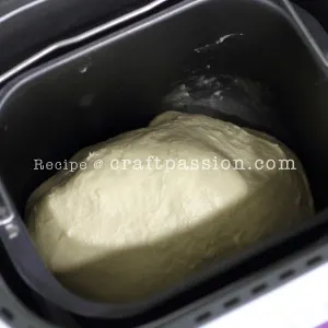 • A stand mixer with a dough hook attachment may be used if you do not have a bread machine. Mix all the dry ingredients in low speed then slowly add in wet ingredients (butter being the last one to add) until they are well combine. Knead it with medium speed until the dough cleans itself from the side of the bowl. The dough should be smooth, elastic and non-sticky. You may do a windowpane test to check if the gluten is well developed.