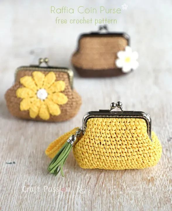 From raffia to coin purse, I just couldn’t resist from designing and crochet more bags and purses from this lovely yarn. If you remember my kisslock Daisy Coin Purse and kisslock Striped …