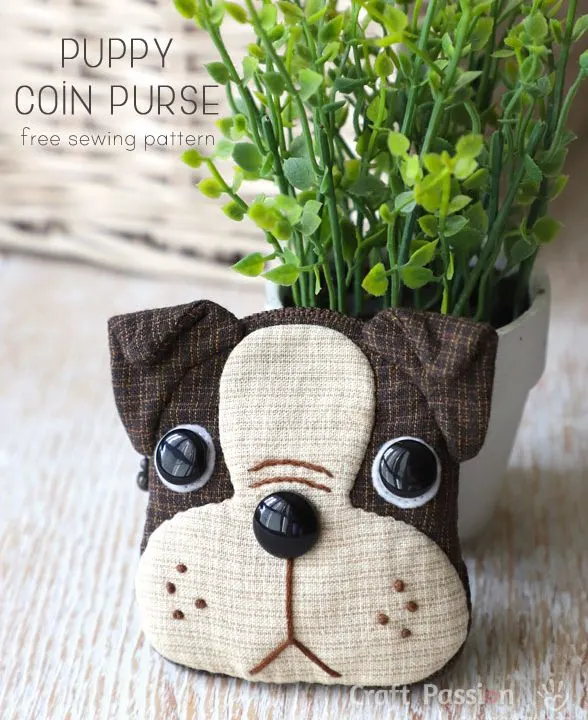 Free sewing pattern to make cute palm sized Boston Terrier inspired Puppy Coin Purse with zipper closure on the top and zipper pocket at the back. Template & detailed instructions which includes step by step photos for easy understanding.