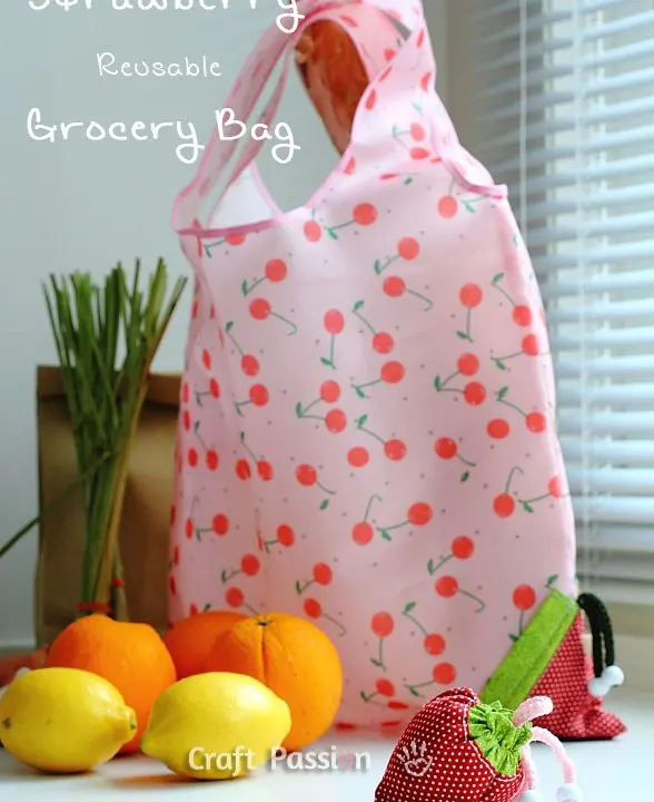 How cute is this reusable grocery bag that has a strawberry-shaped of self-storage bag! It looks like an ordinary grocery bag when in use, folded into a strawberry bag holder …