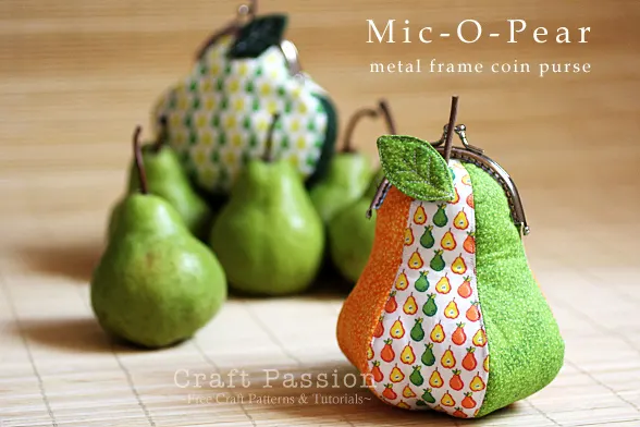 After weeks of fine-tuning and sewing to improvise the 3-D pear purse I designed more than 2 years ago, I finally pear-fected it…. here comes….. the “Mic-O-Pear”, the pear-shaped gamaguchi …