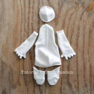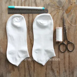 - Gather the materials and tools needed to sew the sock Baymax.