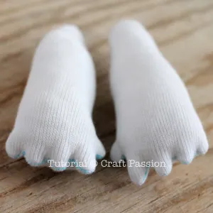 - Turn all the pieces right side out. You will need some help from a pair of blunt point tweezers when turning the little fingers out.