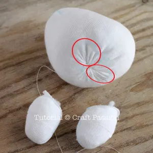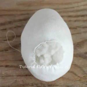 Stuff the head-piece with poly-fill stuffing until it is full and firm. Pull the thread and push in the raw edge to close the opening. Make a secured knot.
