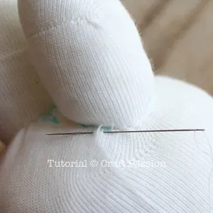 - Stuff both legs but do not sew to close the opening.