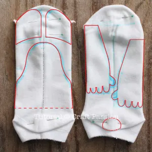 Trace the printed template on the sock. Adjust the size of the template by hand sketching them if the socks are in a different size.
