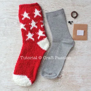 1. Prepare all materials above. Always pre-washed your socks before sewing them. Turn sock right side in and iron.