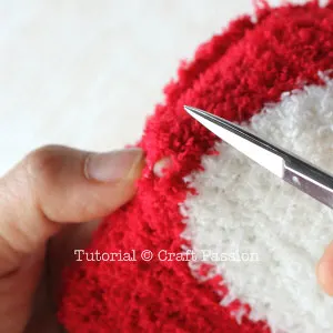 Cover the head with the hood cut out from the microfiber chenille sock.