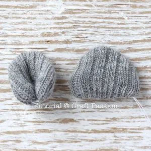 Stretch out the knit on the marking and cut the closest strand of yarn to the marking. This is to create a hole on the hood for the ear.
