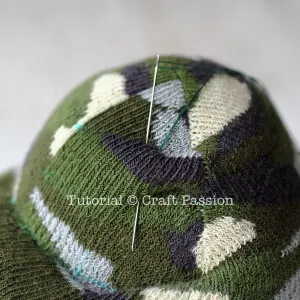 The knot is locked with the sock and it won’t slip away through the knits when you pull the thread during sewing.