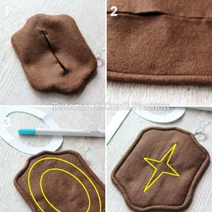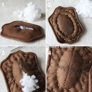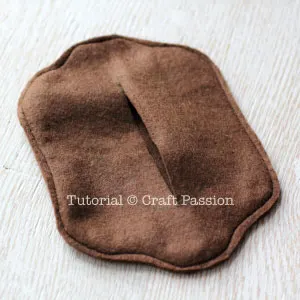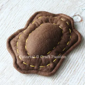 Fold the brown felt and trace the top shell template onto 1 side of the felt. Sew around the tracing line and cut it out with 1/8″ seam allowance.