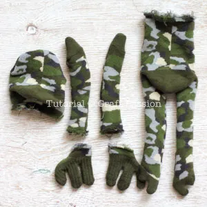 I made some of them “holding” the weapons by wrapping the fingers and sew to secure the position. The arms can be bent in the same way too, just fold it up and sew to secure.