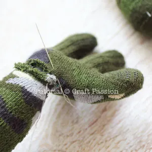 Join the palm to the hand by using a ladder stitch. Repeat the same to the other hand.
