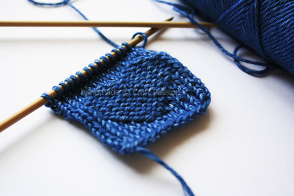 I was kind of lucky in some ways…. my late uncle found a very basic knitting book in a bookstore in Singapore. He bought it for me!!!! It was a thick book in green-scale printing and I remember it was from Taiwan with mandarin explanation and diagram illustration. I was so happy, so happy to see the light at the end of the tunnel after all this while. I learned to knit since then, step by step through the book… Thanks to my late uncle who gave me my very first knitting book. I will never forget him, who had just passed away in June 2009…. this knitted blue heart pattern is for him —- he loves denim jeans.
