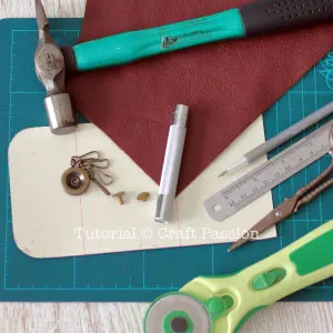 - Gather all the materials and tools needed to make this leather key pouch.