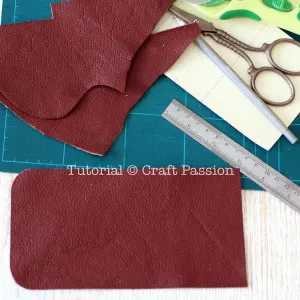 Carefully cut out the leather piece with a pair of strong scissors. If you have a roller cutter, you may use it to cut the straight lines. Cut inside the lines so that the pen marks are not on the edge of the pouch.
