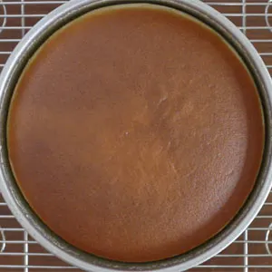 - Use a 1-piece punch-out cake pan, not a springform pan or any other seamed pan as water may seep in from the sides of the cake pan from the hot water bath. If you only have a springform pan it needs to be covered with two to three layers of aluminum foil to prevent water from seeping in.
