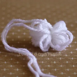 Take out the yarns from your fingers, cut the loops and trim it to round shape. Trim a little at a time so that you won’t over trim it. Gauge the roundness of your mini pom-pom from all angles.