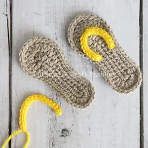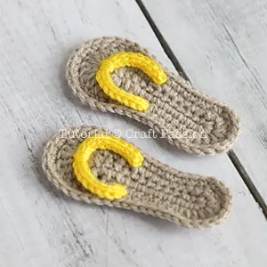 Follow the crochet pattern to make 2 flip-flop soles and 2 straps respectively.