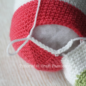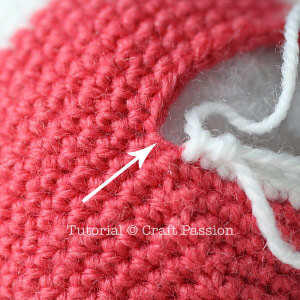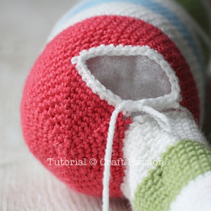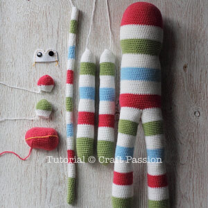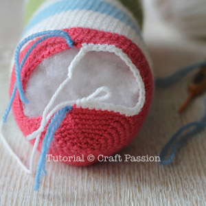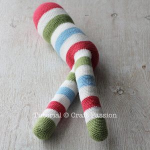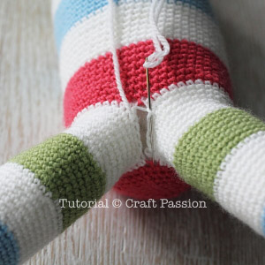 Take off the marking of the left legs and crochet as per pattern instruction. Note that the left leg starts from the front part of the body.