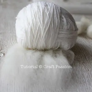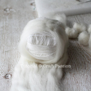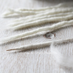 - a. Pull a few inches of off white wool from the roving.