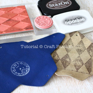 I used Stazon permanent ink pad and some favorite stamps. They stay permanent on the leather, rubbing won’t hurt them, but please avoid aggressive solvent-based cleaner.