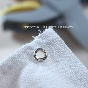 Remark: don’t use scissors to cut hole for single-piece eyelet installation, the fabric will get weaken by the broken threads and start fraying, thus the hole will become bigger and the eyelet won’t stay well there.