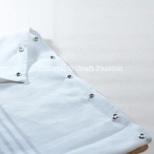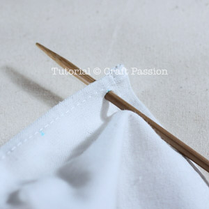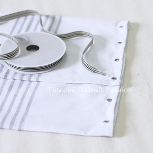 If you are using 28″ length tea towel, mark 1″ from the short length edges, then 2″ between eyelets.