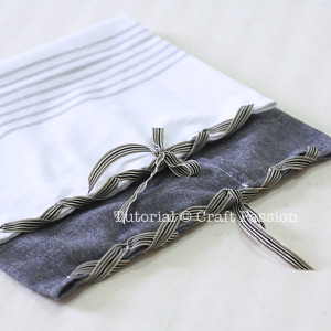 This is a cheap and quick no-sew tea towel pillow, just need a tea towel, some single-piece eyelets and it’s installation tool, ribbons to fasten, plus other supporting tools, you can make the no-sew pillow that has ribbon-lace and bows at the sides.