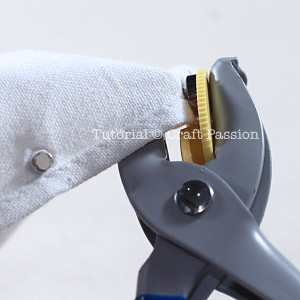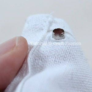 Carefully insert the eyelet stud through the hole, insert the eyelet from the right side.