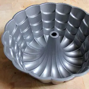 - The baking pan we used to bake this butter cake is Wilton Dimensions Belle Pan. The pan is about 9″ diameter (top), so, it is only about 60% filled with batter before baking.