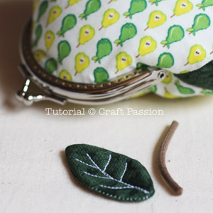 Sew the leaf on the purse to complete the Mod-O-Pear Coin Purse.
