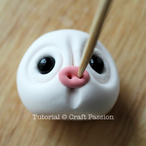 clay nosePlace the pink nose onto the face of the piggy, lightly press it down with a toothpick.