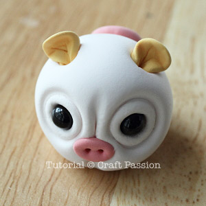 make pig clay charmHold the sides of the white clay ball, lightly press in on the table to create a flat bottom so that it sits better on your working table.