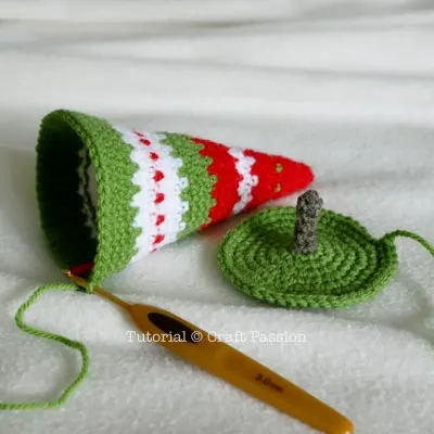 - Crochet to join the base to the body at the final round of the tree.