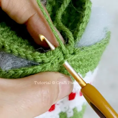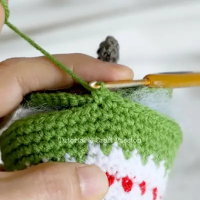 Crochet the following 3 rounds with Green yarn only