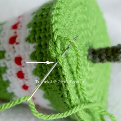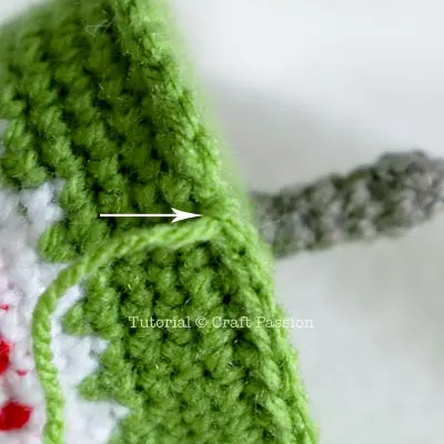 Crochet the next round with White and Green yarn on alternating stitch.