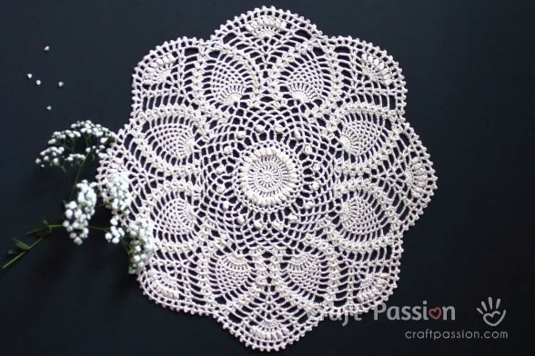 Get the full article at https://www.craftpassion.com/pineapple-doily-pattern-2/.